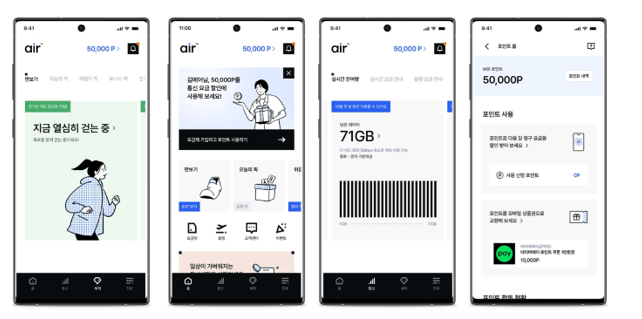고객들에게 가장 호응이 높을 것으로 기대되는 기능은 에어 포인트다. 에어 앱에서 다양한 미션을 수행해 쌓은 포인트는 모바일상품권 구매와 요금 납부에 이용할 수 있다.