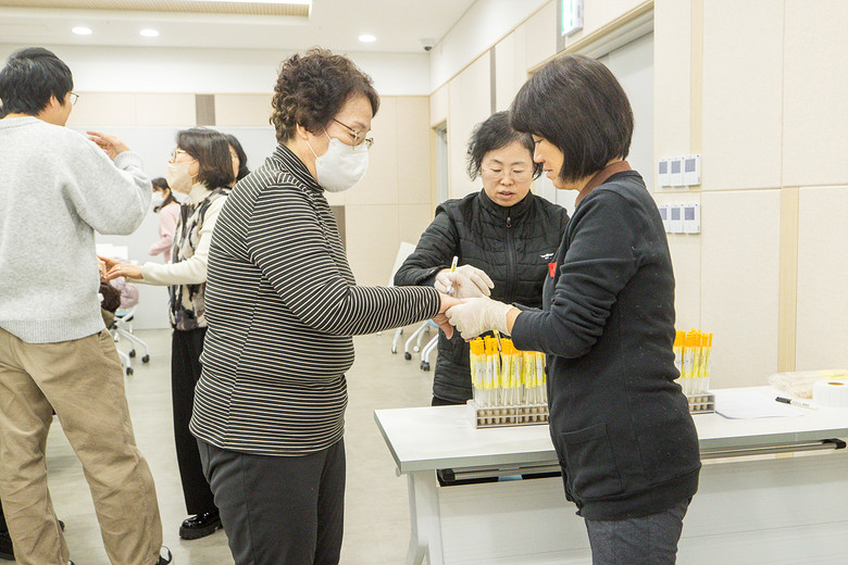 노인일자리 수행기관이 검사 대상자 명단과 신청서를 사전에 일괄 접수하고, 검사 당일에는 보건소 별관 로비층에서 신분 확인부터 채변검사, 흉부 X-ray 검사까지 순차적으로 진행해 이동 동선을 최소화한다.