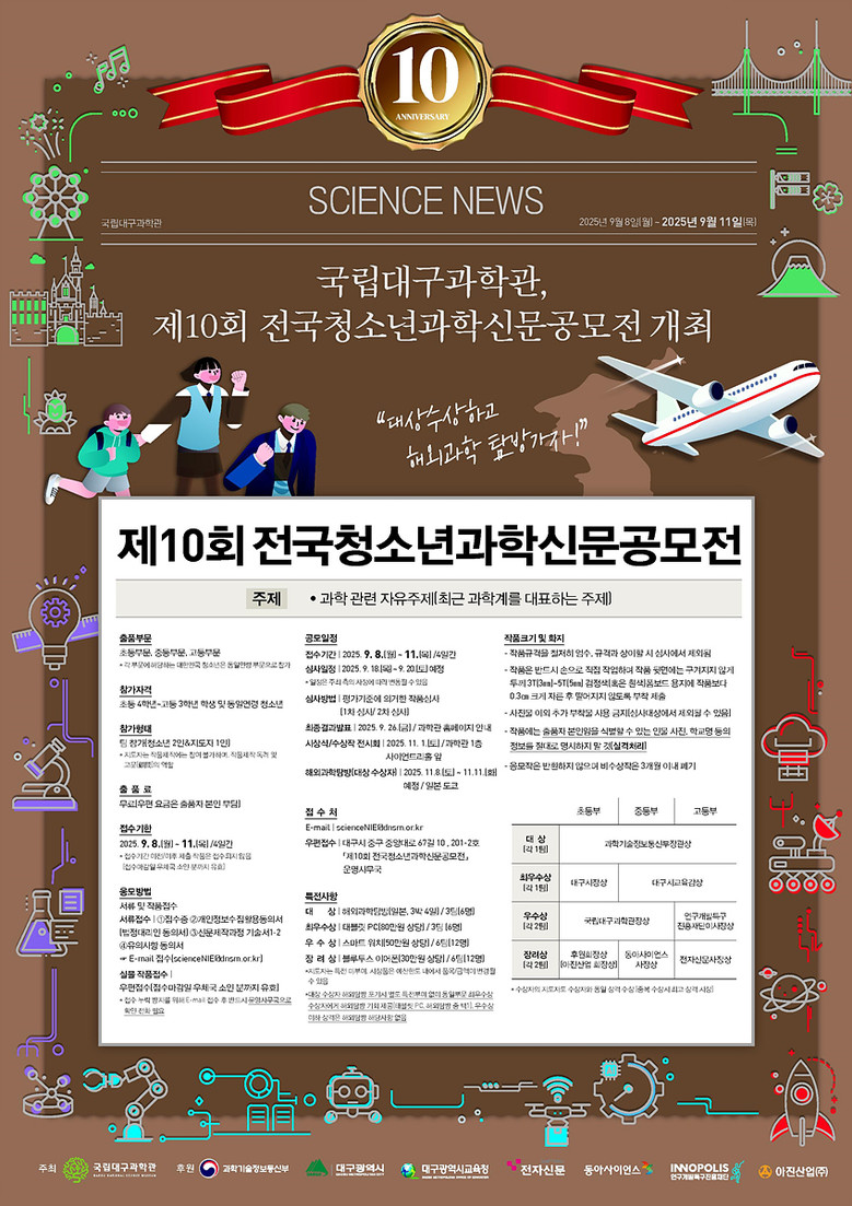 이난희 국립대구과학관장은 “10째를 맞은 만큼 이번 공모전 참가자들의 작품이 기대된다”며, “공모전에 참가하는 청소년들은 손글씨로 신문 지면을 제작하는 특별한 경험을 통해 뜻깊은 여름방학을 보내기를 바란다”고 말했다.