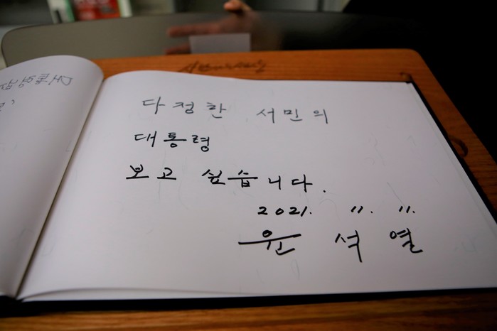 [세계타임즈 이진화 기자]윤석열 국민의힘 대선후보는 11일 오후 경남 김해 봉하마을에 고(故) 노무현 전 대통령 묘소를 을 참배한 뒤 "노 전 대통령의 정신을 발 배우겠다"고 밝혔다.