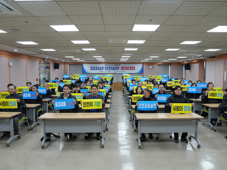 이번 결의대회는 중대재해처벌법 시행 4년을 맞아 안전관리의 실효성을 높이고, 현장 중심의 예방 활동을 강화하기 위해 마련됐으며, 공단 임원을 비롯해 노동조합 위원장, 전 부서장, 안전보건업무 담당자 등 100여 명이 참석했다.