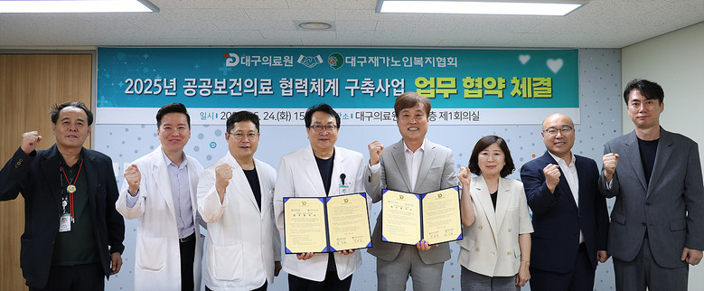 이어 김시오 대구의료원장은 “관내에 거주 중인 위기 취약 계층 어르신이 거주지에서 양질의 의료 서비스를 제공받을 수 있도록 경북대학교병원 의료진의 대구의료원 파견 확대와 뇌혈관센터 운영을 더욱 활성화하고, 향후 통합외래진료센터(2027년 완공 예정) 운영, 지역응급의료센터 격상 등 전반적인 진료 역량을 향상할 예정이다. 이와 함께 양 기관 간 협력체계 구축과 교류를 확대하여 사각지대 없이 필수 의료가 제공될 수 있도록 책임 의료기관의 역할을 다하겠다”고 말했다.