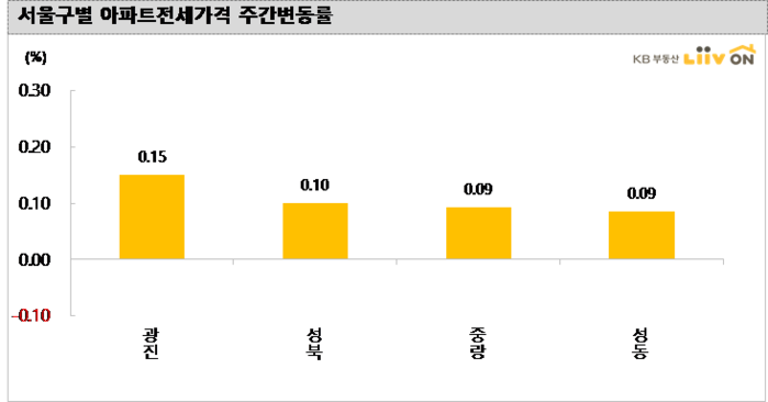 [전세 서울] 하락 지역 없이 광진·성북·중랑·성동구 등 강북지역이 상승을 주도