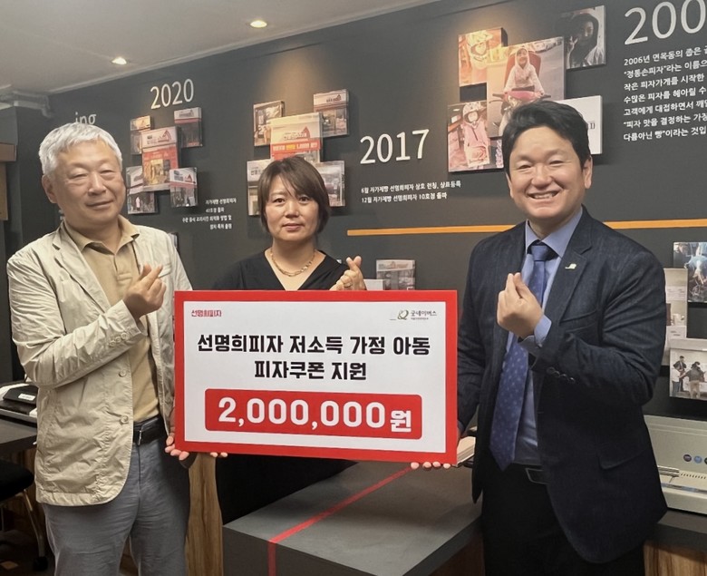 선명희 피자 천정효 대표는 “지역 내 아이들에게 좀 더 밝은 미래와 따뜻한 마음을 전하고 싶었다”고 전했다.