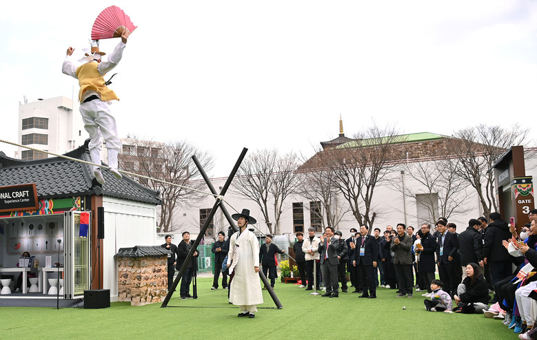 야외전시장에서 진행된 넷플릭스 오징어게임 테마의 전통놀이 체험(제기차기, 비석 치기, 딱지치기 등)도 많은 이들이 참여했다.