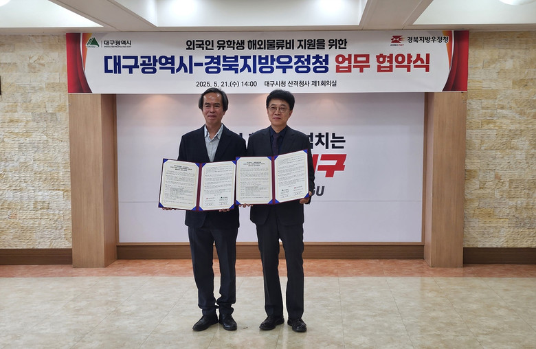 협약을 통해 오늘(21일)부터 지역의 외국인 유학생들은 대구시 소재 110개의 우체국과 우편취급국에서 국제특급우편서비스(EMS) 요금을 기본 10%, 최대 13%까지 할인받을 수 있다.