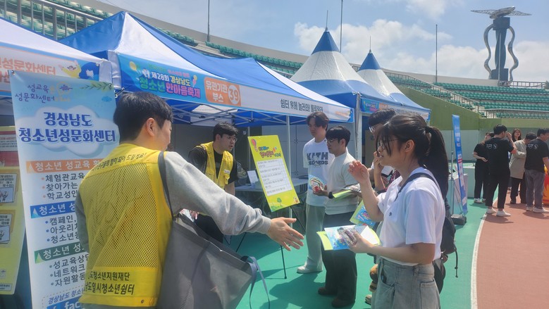 [세계타임즈]최성룡기자 = 경상남도(도지사 박완수) 출연 기관인 경상남도청소년지원재단(원장 박춘덕)과 경상남도일시청소년쉼터(소장 최문주)는 5월17일부터 5월 18일 거제종합운동장에서 열리고 있는 제 28회 청소년한마음축제 행사장 5월17일(토) ‘쉼터家’에놀러와!룰루랄라’ 주제로 거제종합운동장에서 청소년을 위한 연합거리상담을 진행했다.