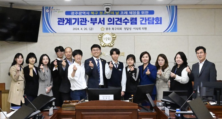 [광주 북구 세계타임즈 = 손권일 기자] 광주 북구의회 정달성 의원(더불어민주당, 용봉·매곡·삼각·일곡)이 지난 26일 이숙희 의원(더불어민주당, 두암1,2,3·풍향·문화·석곡동)과 공동으로 ‘광주 북구 청소년의 날 조례 제정을 위한 간담회’를 개최했다고 밝혔다.