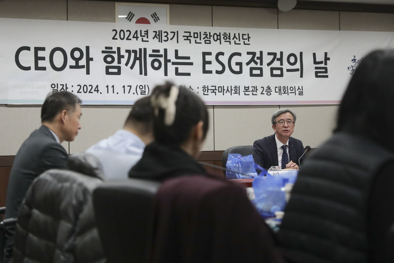[세계타임즈 = 송민수 기자] 한국마사회(회장 정기환)는 지난 17일, 국민관점의 경영 개선 사항을 발굴하고 보다 적극적인 소통을 위해 국민참여혁신단과 CEO가 함께하는 ‘’ESG점검의 날‘ 행사를 개최했다고 밝혔다.