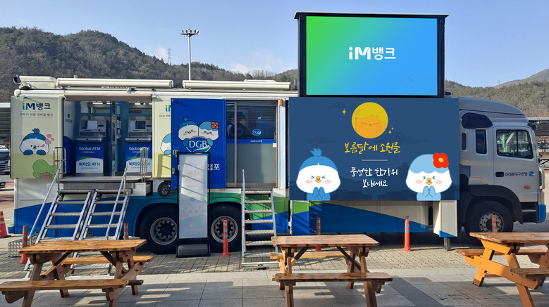 DGB대구은행 이동점포(찾아가는 은행)는 무빙뱅크 1호 차량, 무빙뱅크 2호 차량, 휴대용 포터블 DGB로 구성되어 있으며 금번에 지원하는 무빙뱅크 1호 차량은 금융단말기와 자동화기기(ATM)가 탑재된 16톤급 차량형 이동점포로 무선통신망을 이용해 찾아가는 금융서비스를 제공하고 있다