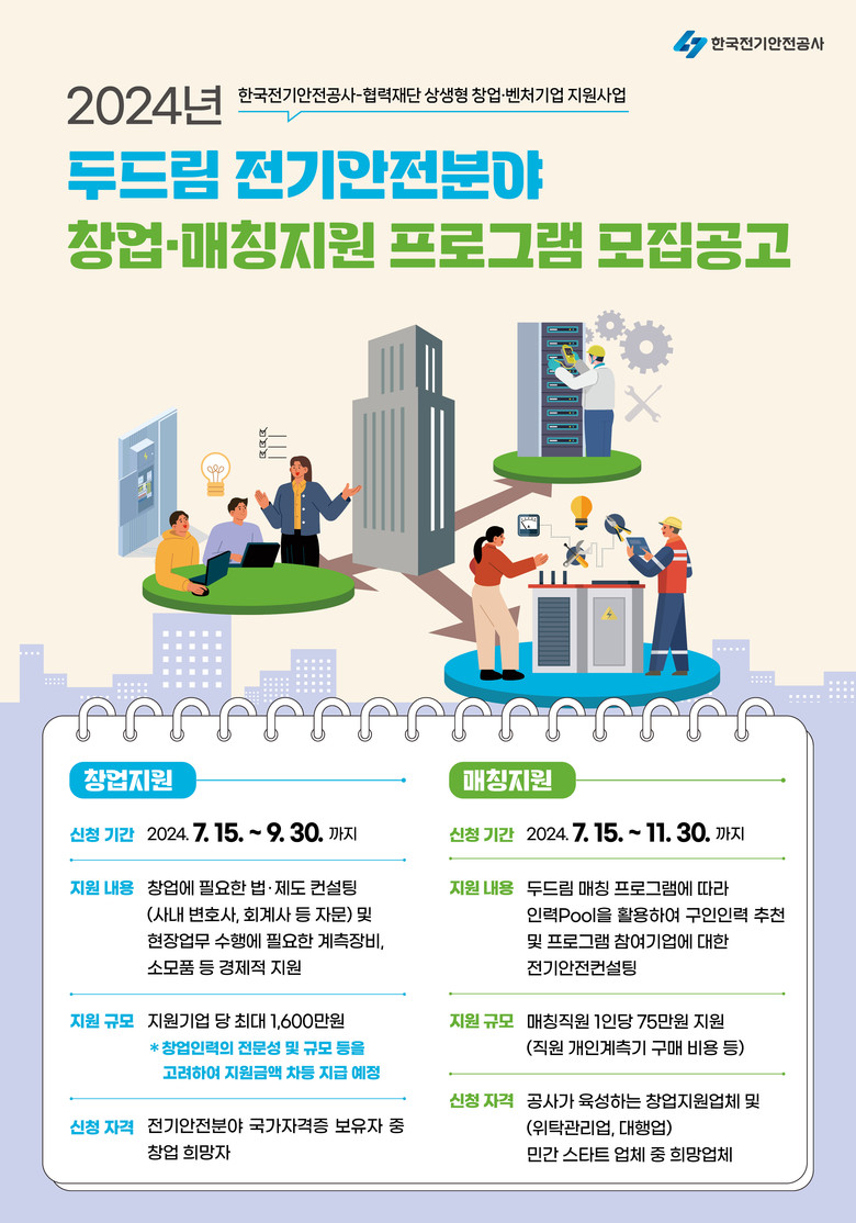 신청 자격으로는 전기안전분야 업무를 수행할 수 있는 국가기술자격증을 보유하고 있으면 누구나 참여 가능하며, 자세한 사항은 공사 홈페이지(www.kesco.or.kr)와 대중소기업·농어업협력재단 홈페이지를 통해 확인할 수 있다.