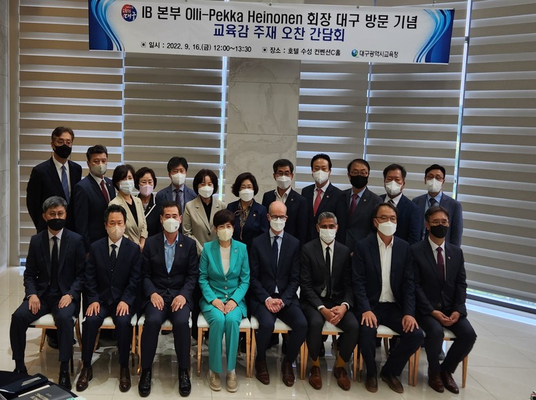 [대구 세계타임즈=한성국 기자] 대구광역시의회 교육위원회(위원장 이동욱)는 9월 16일(금) ‘2022. IB 본부 회장 대구 IB월드스쿨 방문 워크숍’에 참석하여 Olli-Pekka Heinonen회장과 만나 대구 IB교육이 나아가야 할 방향에 대한 의견을 나누었다.