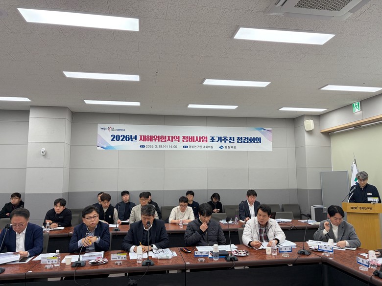 - 사업 조기착공, 사업장 현장안전관리, 2027년 국비확보에 총력 - [세계타임즈=경북 한윤석 기자] 경북도는 3월 18일 ‘2026년 재해위험지역 정비사업 조기 추진점검회의’를 개최했다.