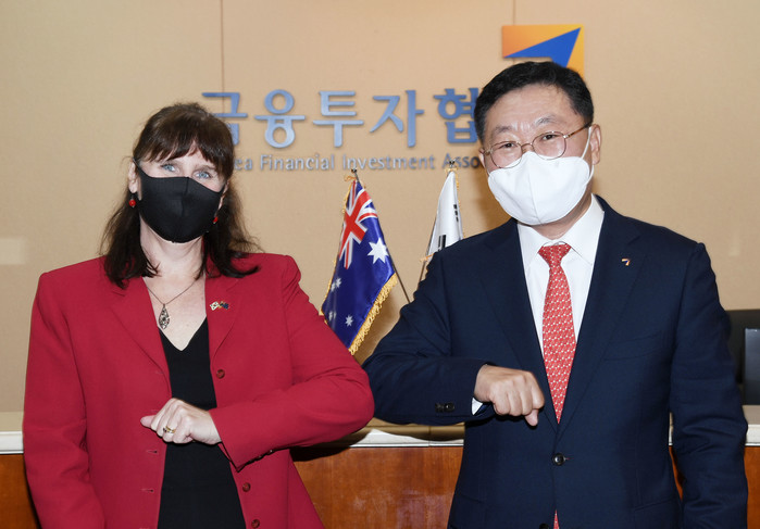 올해는 한국과 호주 수교 60주년으로 나재철 회장과 캐서린 레이퍼 대사는 금투업계에서도 양국간 우호 관계를 더욱 강화해 나가자는 결의를 다졌다.