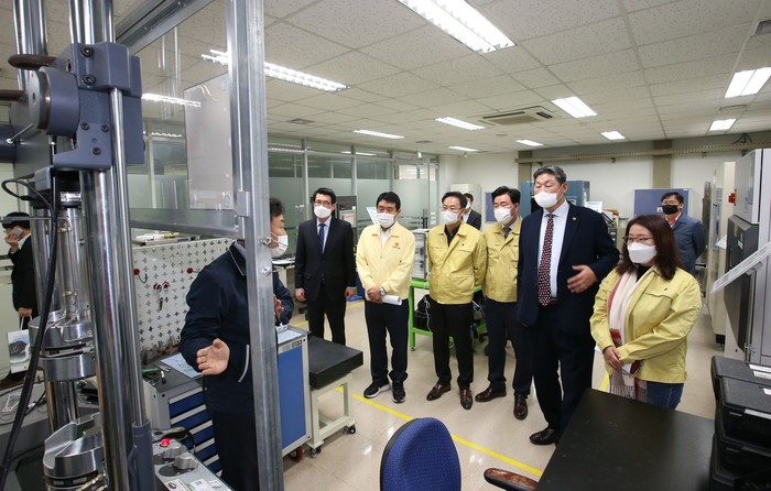 먼저 오전에는 경북하이브리드부품연구원을 방문해 운영현황과 건의사항을 청취하고 연구원 곳곳을 둘러봤다.