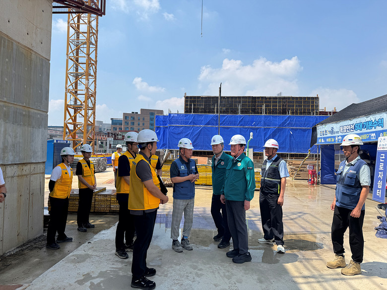 정명섭 사장은 앞서 실시한 불시 안전점검 결과를 바탕으로 폭염대비 우수현장을 선정해 포상을 수여했으며, 전해질 음용수를 근로자들에게 직접 전달하며 감사와 격려를 전했다.