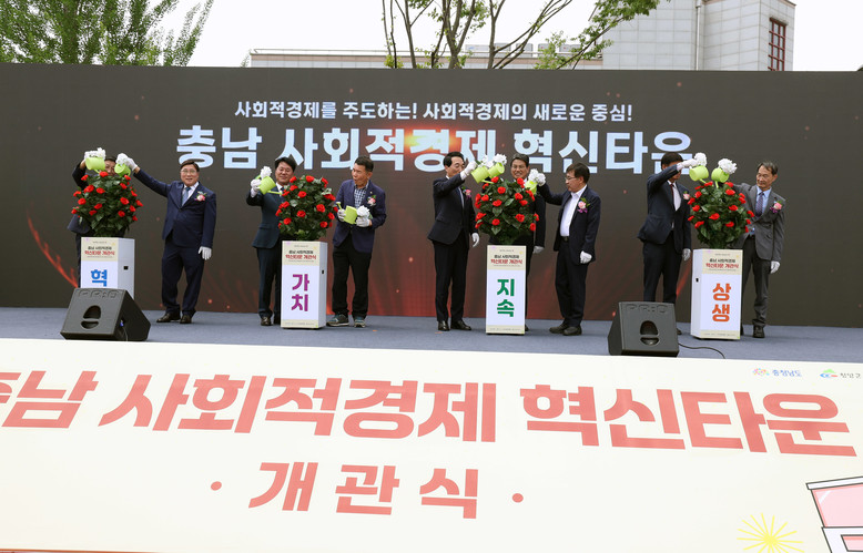 도는 10일 청양군 청양읍 송방리에서 전형식 정무부지사와 정광섭 도의회 부의장, 김돈곤 청양군수, 사회적경제 기업 관계자 등 300여 명이 참석한 가운데, ‘충남 사회적경제 혁신타운 개관식’을 개최했다.