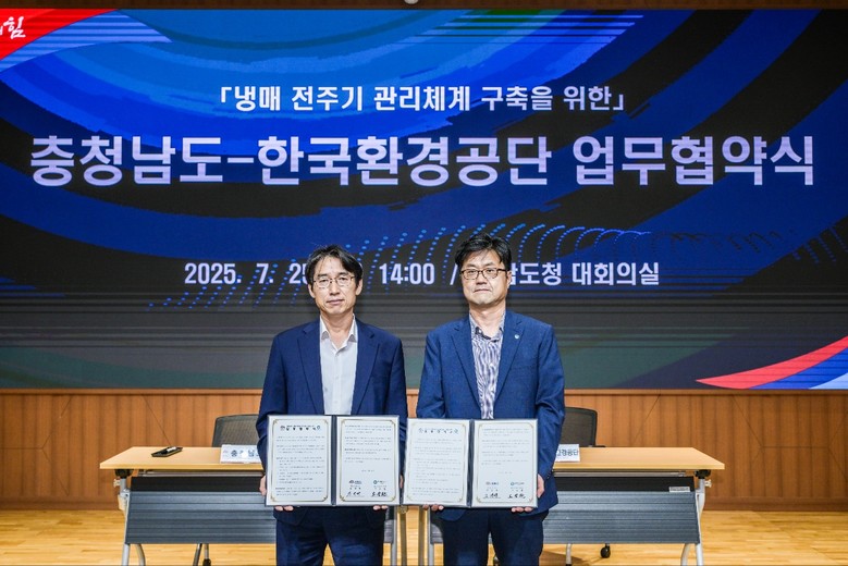 - 한국환경공단과 협약 체결…냉매관리시스템 도입 및 직원 교육 추진 - [세계타임즈=충남 이현진 기자] 충남도가 정부계획 보다 5년을 앞당긴 2045 탄소중립 실현을 위해 전국 최초 읍면동까지 포함한 ‘2025 냉매관리 종합계획’을 본격 추진한다.
