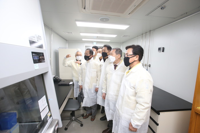 이날 환경복지위원들은 의심환자 발생 시 진행되는 코로나19 검체 처리 전과정에 대한 설명과 함께, 애로사항 청취 후 간식 및 유자차를 전달하고 관계공무원들을 격려했다.