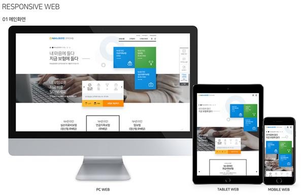 NH농협생명의 온라인보험 웹사이트는 2017년 12월 4일(월) 오픈한 PC/테블릿/모바일 환경에서 모두 구현 가능한 반응형웹(Responsive Web) 형태의 홈페이지다.