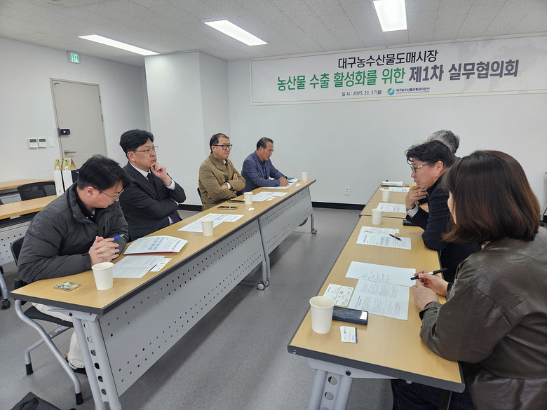 대구농수산물유통관리공사는 지난 11월 6일 ㈜세중해운, ㈜케이에프플러스와 ‘대구·경북 농산물 수출 증진 및 고도화를 위한 3자 업무협약(MOU)’을 서면 체결하고, 17일 제1차 실무협의회를 개최했다.