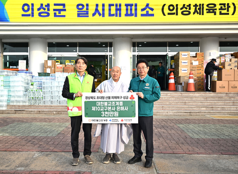 이철우 경상북도지사는 “초대형 산불 피해로 힘든 시간을 보내고 있는 주민들을 위해 따뜻한 마음을 전해주신 대한불교조계종에 깊이 감사드린다며, 소중한 성금이 피해복구와 주민지원에 잘 쓰일 수 있도록 최선을 다하겠다”고 밝혔다.