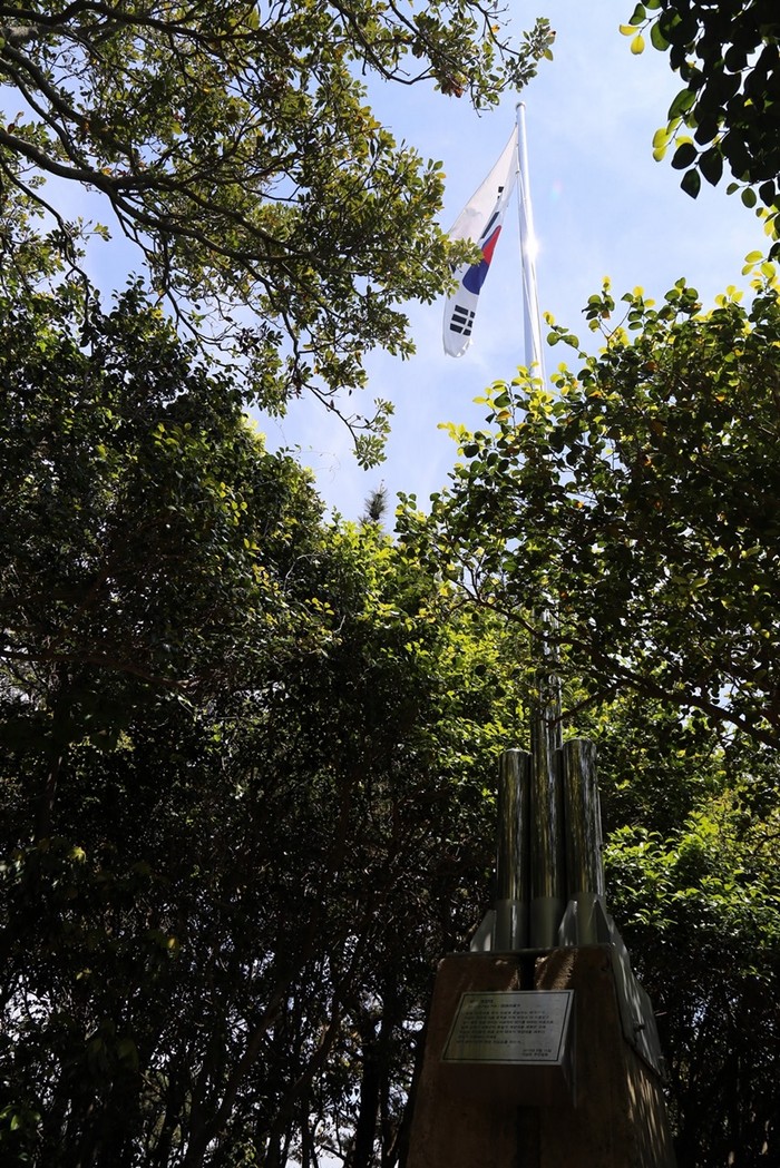 광복 70주년을 맞이해 지난 2015년 8월 15일 지심도 주민들이 뜻을 모아 일본군 전범기 게양대가 있던 자리에 태극기 게양대를 세웠다.