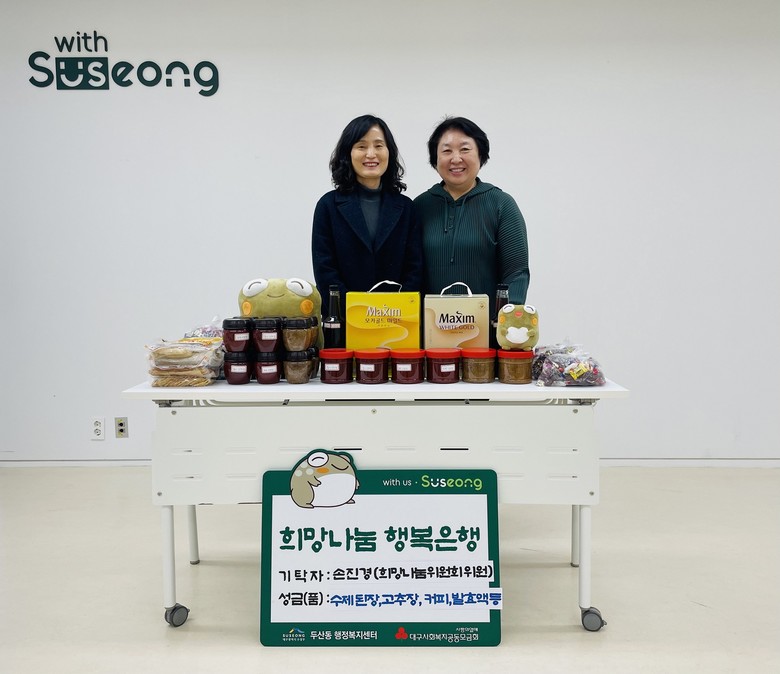 [수성구 세계타임즈=한윤석 기자] 대구 수성구 두산동 희망나눔위원회 손진경 위원은 지난 26일, 정성껏 만든 수제 된장과 고추장을 지역 내 경로당에 기탁하며 따뜻한 나눔을 실천했다.