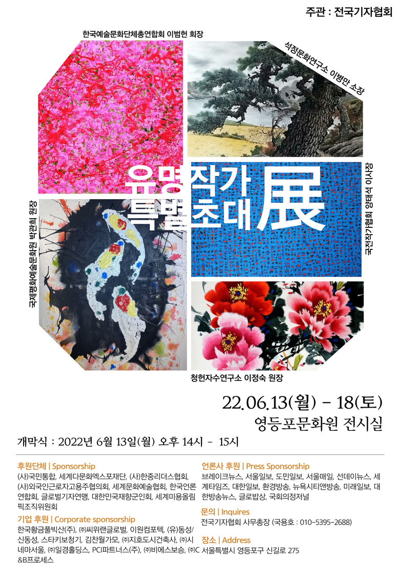 ▲전국기자협회가 주관하는 ‘유명작가 특별 초대전(展)’ 포스터 |