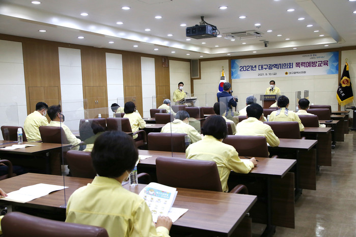 [대구=세계타임즈 한성국 기자] 대구광역시의회(의장 장상수)가 9월 10일(금) 오후 2시, 시의회 3층 회의실에서 전체 시의원을 대상으로 하는 성희롱, 성매매, 성폭력, 가정 폭력 등 4대 폭력 예방 교육을 실시하였다.