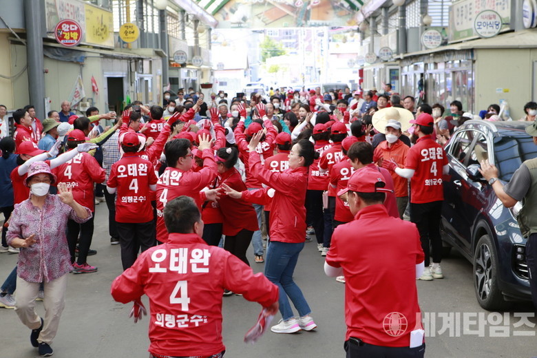 [세계타임즈 = 이진화 기자] 재선에 도전하는 오태완(무소속) 경남 의령군수 후보가 6.1 지방선거운동 마지날인 31일 오후 부림면 신반전통시장에서 축제같은 선거를 강조하며 표심잡기에 나섰다.