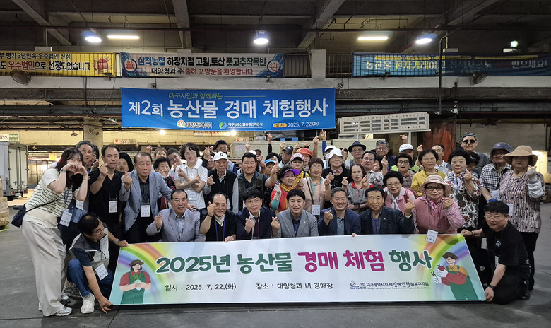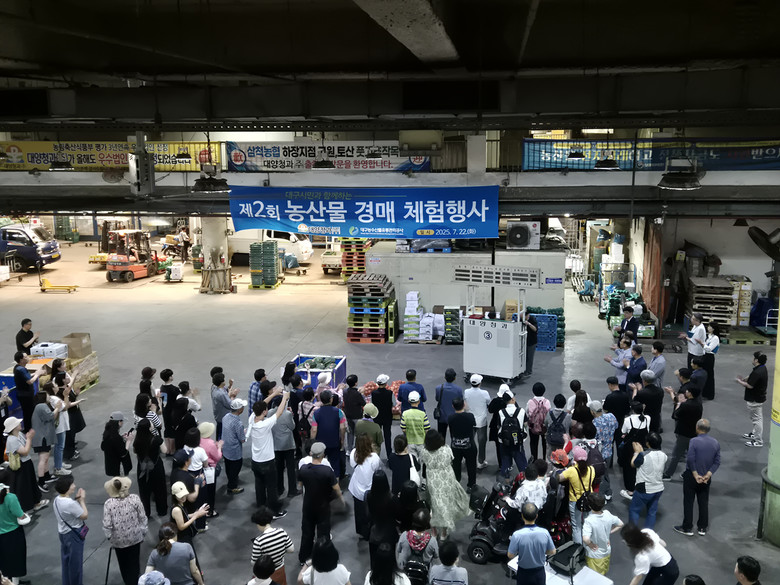 ▸ 참가 규모 확대로 참가자들의 뜨거운 호응 속 성료 [세계타임즈=대구 한윤석 기자] 대구농수산물유통관리공사(이하 ‘공사’)는 7월 22일(화)에 2025년도 제4회 농산물 도매시장 경매체험 행사를 성공적으로 개최했다.