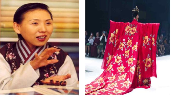 ▲김정아 디자이너(왼쪽)과 무궁화 한복(오른쪽)