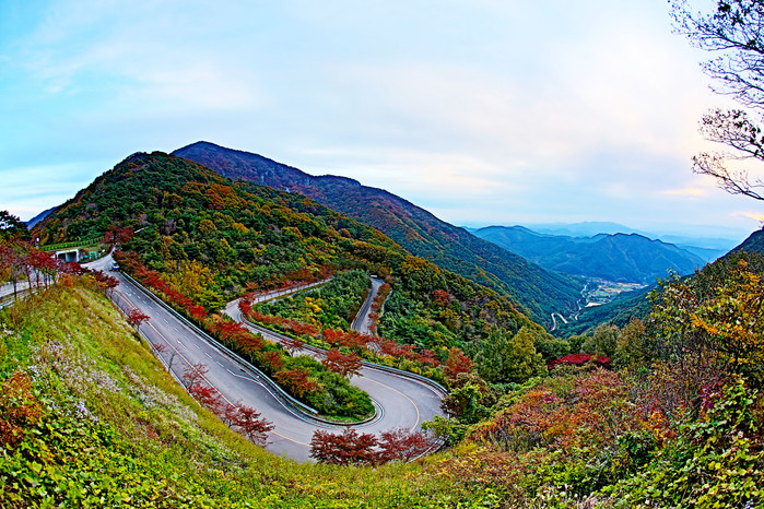 ▲ 밤머리재(산청) = 산청군 금서면과 삼장면을 이어주는 고갯길로 구름의 놀이터라 불리는 밤머리재는 길 양쪽으로 서있는 적단풍이 물감으로 색칠한 풍경화를 보는 듯한 즐거움을 느낄 수 있는 곳이다.