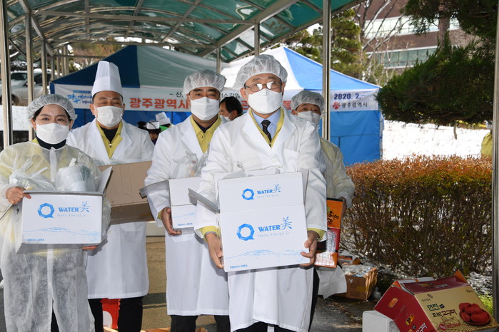 [광주=세계타임즈 손권일 기자] 광주광역시의회(의장 김동찬) 의원들은 17일 코로나19 임시격리시설인 광주소방학교를 찾아 현장근무자와 자원봉사자를 격려하고 급식봉사를 실시했다.
