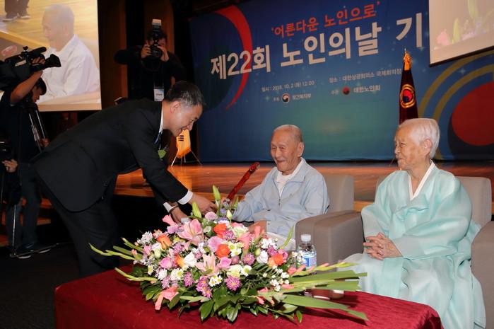 특히 금년에 노인의 날 최초로 대통령 내외께서 100세 어르신의 장수를 축하하며, 건강을 기원하는 축하카드를 송부해 의미를 더했다.
