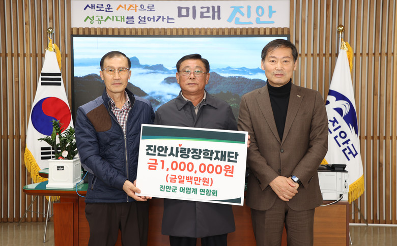 [진안 = 세계타임즈 김서주 기자] 진안군 어업 계 연합회는 18일 진안사랑장학재단(이사장 전춘성)에 장학금 100만원을 기탁했다.