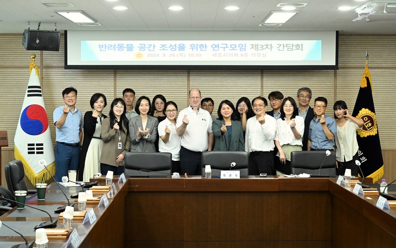이날 간담회에는 연구모임 회원 외에도 상병헌 의원과 한국K9클럽 김한아 대표가 참석해 2025년 세종시 반려동물 축제 제안 및 타 지자체에서 시행 중인 반려견 순찰대 정책을 소개했다.