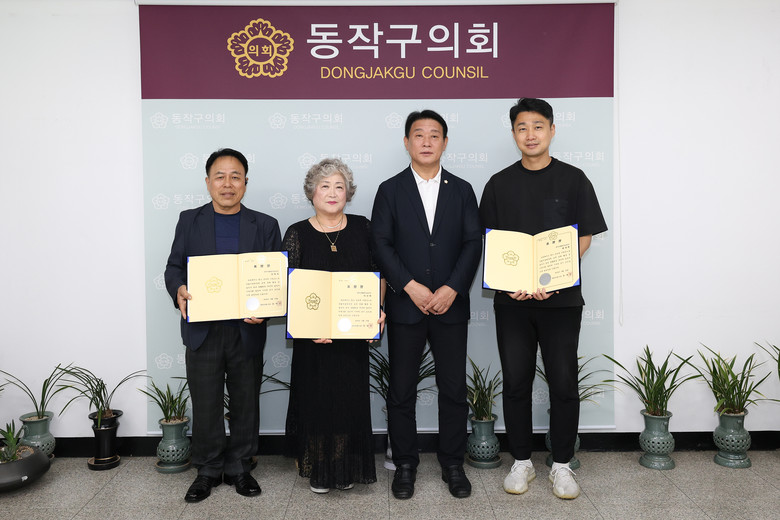 [동작구 세계타임즈=이장성 기자] 동작구의회(의장 정재천)는 24일 구의회 의장실에서 동작구 환경 개선에 기여한 ‘동작생활환경실천단’ 7명에게 의장 표창장을 수여했다.