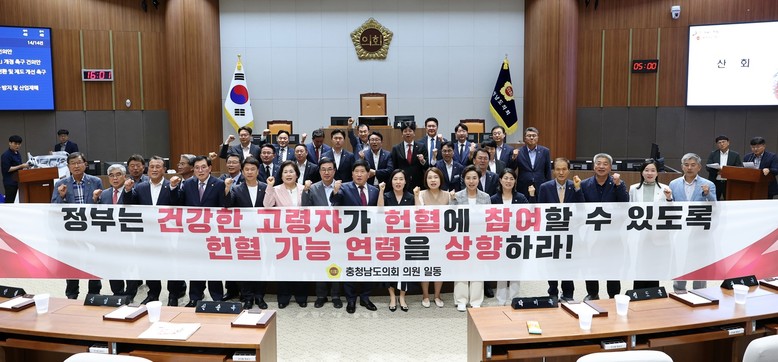 [충남 세계타임즈=이현진 기자] 충남도의회가 고령화 사회에 따른 혈액 수급 위기에 대응하고자, 헌혈 가능 연령 상향을 정부에 강력히 촉구했다.