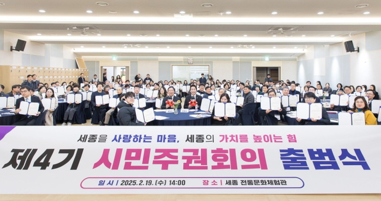시는 19일 세종전통문화체험관에서 최민호 시장과 시민위원, 전문가, 시의원, 시 관계자 등 160여 명이 참석한 가운데 제4기 시민주권회의 출범식을 열었다.