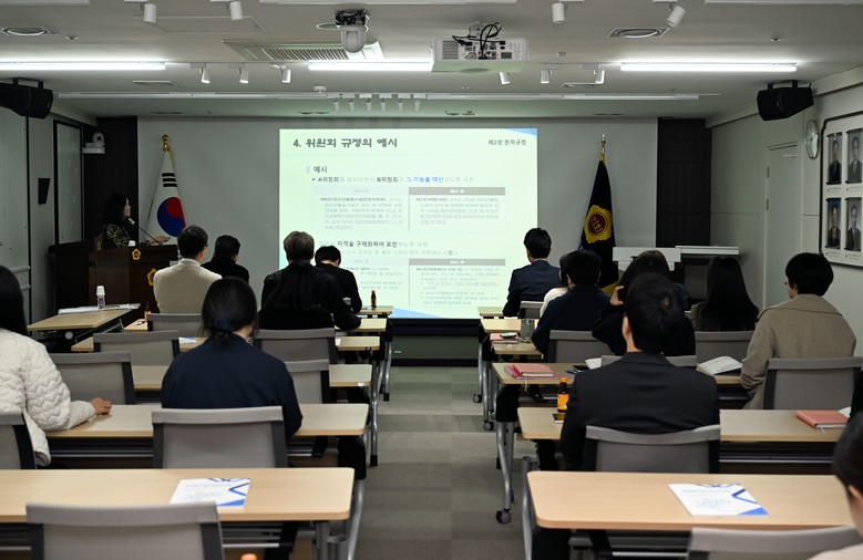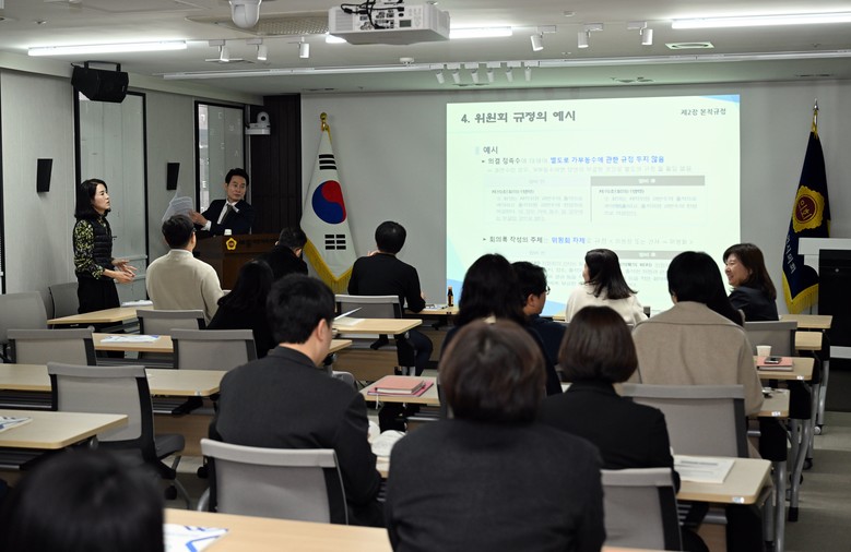 이번 교육은 분기별로 총 4회에 걸쳐 마련된 교육 중 첫 번째 자리다. ‘자치법규 입안 기본 과정’이라는 주제로 자치법규 입안 기준 및 작성의 원칙 등을 주제로 2시간 동안 진행되었다.
