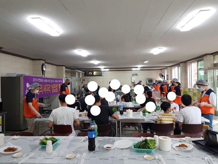이날 삼겹살 봉사에는 추석연휴에도 유희자 단장을 비롯한 자원봉사자 10명이 삼겹살과 목살 그리고 김치볶음밥을 준비하였다.