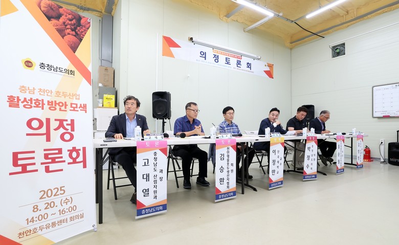 [충남 세계타임즈=이현진 기자] 충남도의회는 20일 천안호두유통센터 회의실에서 ‘충남 천안 호두산업 활성화 방안 모색’을 주제로 의정토론회를 개최했다. 이번 토론회는 천안 호두산업이 직면한 다양한 문제점을 진단하고, 지역특화산업으로서의 경쟁력 강화 방안을 모색하기 위해 마련됐다.