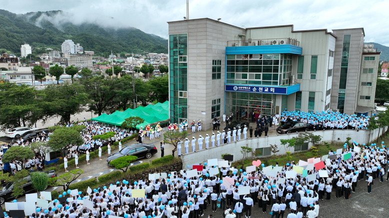 | ▲지난 6월 30일 전남 순천 신천지 순천교회에 방문을 마친 이만희 총회장을 환송하기 위해 나온 교인들의 모습. [사진 제공 = 신천지예수교회] |
