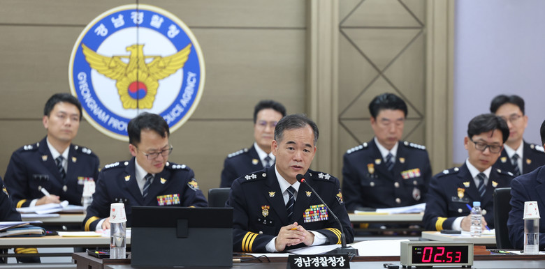 김종철 경남경찰청장이 28일 오후 경남경찰청에서 열린 국회 행정안전위원회 경남경찰청 국감에서 의원 질의에 답변하고 있다. 2025.10.28