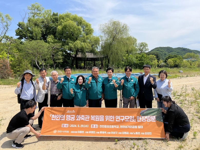 [천안시 세계타임즈=백택기 기자] 천안시의회 「천안의 행궁 화축관 복원을 위한 연구모임」 이종만(대표의원), 유영진, 류제국, 이상구, 김행금, 노종관, 김강진의원은 29일 천안의 행궁 ‘화축관’과 관련된 3곳을 선정하여 현장 방문을 실시했다.
