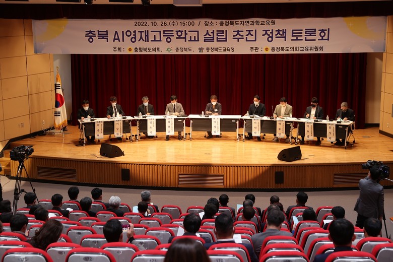 [충북 세계타임즈=이현진 기자] 충북도의회 교육위원회(위원장 김현문)는 10월 26일(수), 충청북도자연과학교육원 시청각실에서 ‘충북 AI 영재고 설립 추진 정책 토론회’를 개최해 도민과 전문가의 의견을 수렴하는 시간을 가졌다.