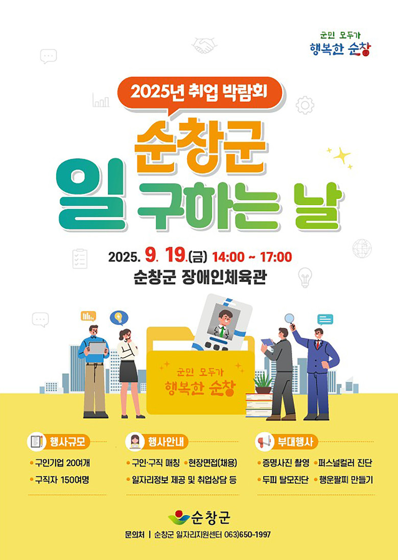 행사와 관련한 자세한 사항은 순창군청 경제교통과 일자리창출팀(☎ 650-1313, 1337)으로 문의하면 된다.