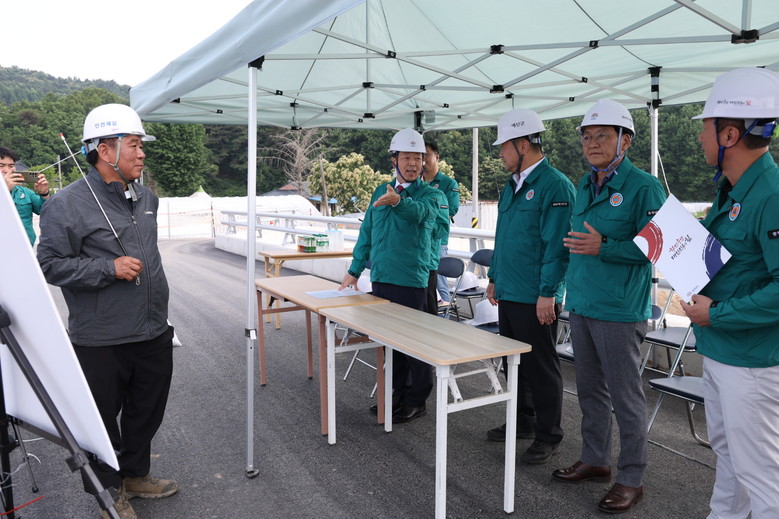 이날 시왕 자연재해위험개선지구 사업장을 방문한 박정주 행정부지사는 하천 및 재해 취약구간 정비상황을 점검하고, 장마가 시작되기 전에 사업을 마무리해 달라고 당부했다.
